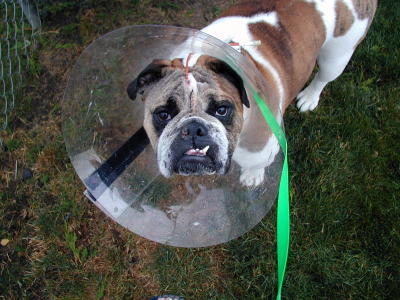 cone was rubbing his neck.