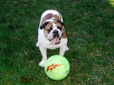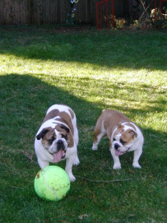 Playing in the yard with their new jumbo tennis ball