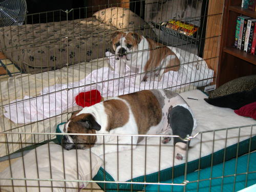 Venus gets a little special time with Brodie. They get along really well and she looked so sad on the other side of the x-pen. I've been spending the nights in the x-pen along with Brodie and Venus and we have all been doing really well. Not as comfy as the bed, but it will work.