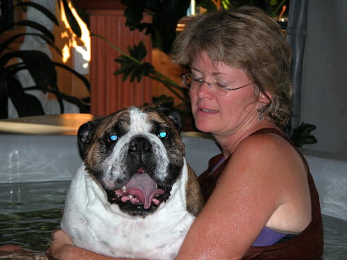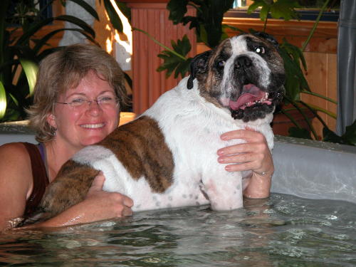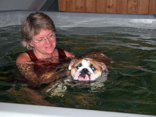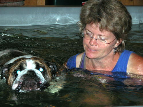 Week 4: Brodie and his water therapist, Cindy, at La Paw Spa.