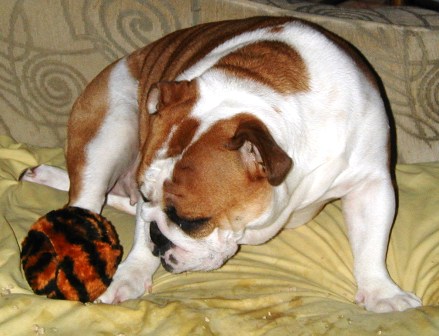 Playing in the yard with their new jumbo tennis ball